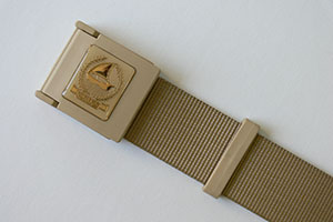 The end of the webbing is placed on the inside of the belt, which provides a neat look when one is wearing the belt since the belt-tip is not visible; the buckle allows for size adjustment.